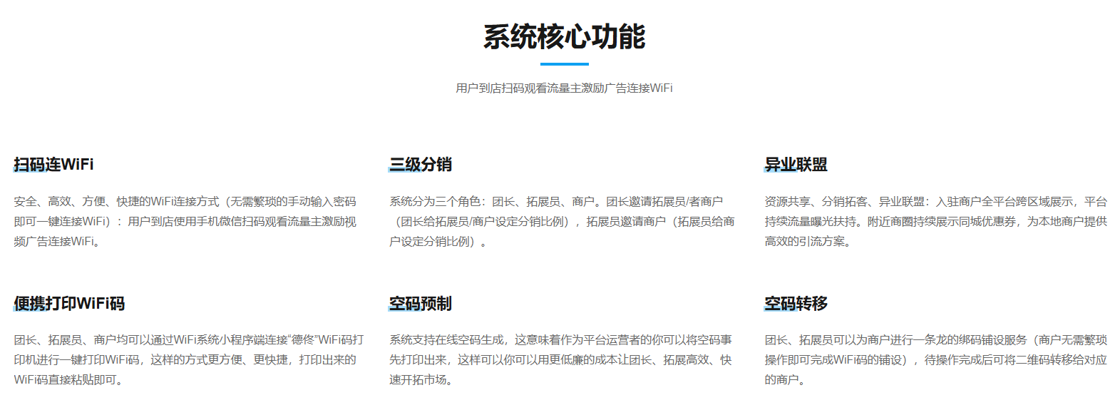 ### 程序介绍: | 程序名称 | 参考价格 | 程序类别 | 适用平台 | | -------------- | -------- | -------- | ---------- | | wifi大师专业版 | 199 | SAAS | 微信小程序 | --- #### 程序简介:    --- #### 后台演示: wifi.xdurl.com 账号:yanshi 密码:yanshi --- #### 前端/案列: #小程序://寸迷商贸/S7uFNVHkHvB9EXr #小程序://深烛wifi大师/1v097gbJ5n581tu ---