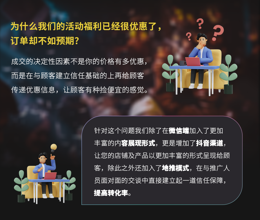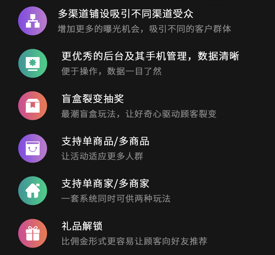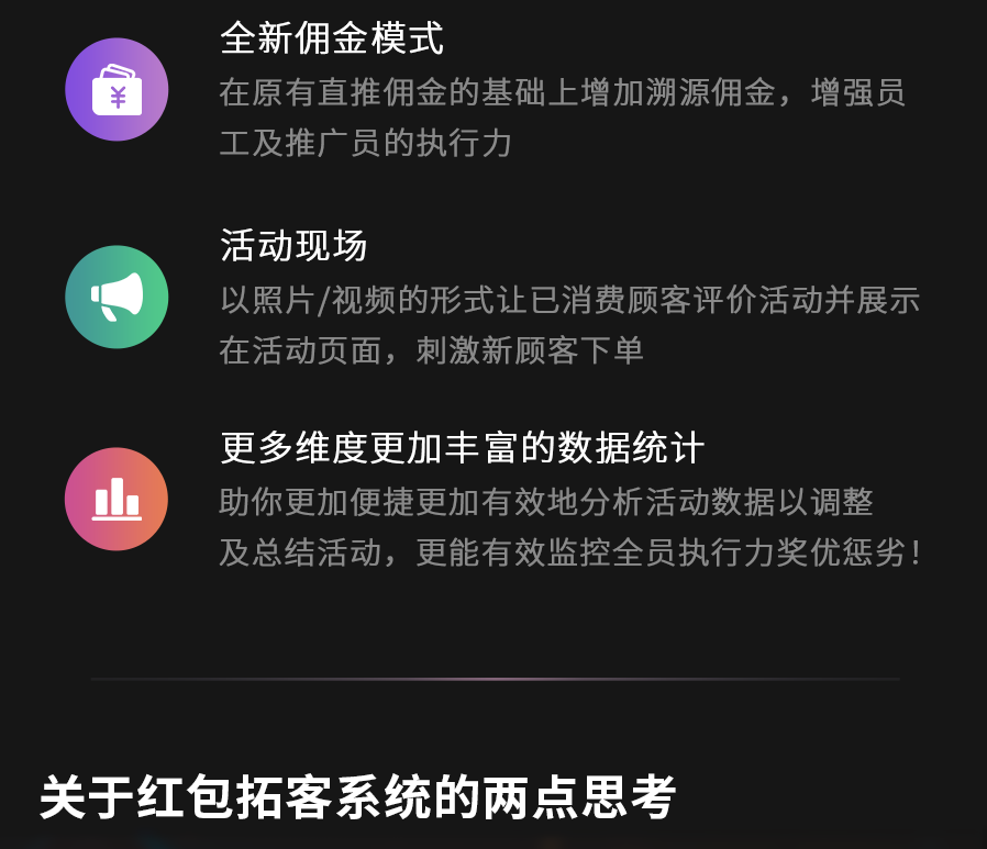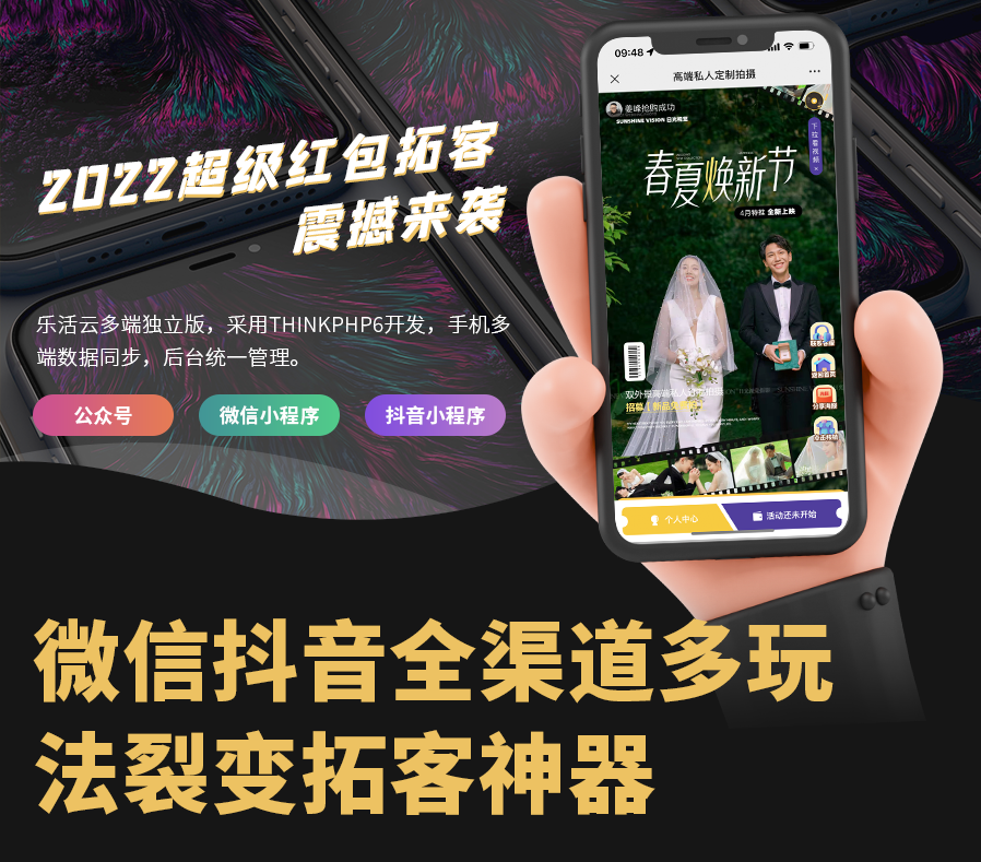 ### 程序介绍: | 程序名称 | 参考价格 | 程序类别 | 适用平台 | | ---------- | -------- | -------- | ----------------- | | 乐活云拓客 | 299 | SAAS | 公众号/微信小程序 | | 无限开/年 | 999 | SAAS | 公众号/微信小程序 | --- #### 程序简介:        --- #### 后台演示: lyh.fanstick.cn 账号:ceshi1 密码:ceshi1 --- #### 前端/案列: #小程序://晋互动/ZyxUeLBR9c3191m #小程序://亦团团/AAo5bAwxAKzU0gm #小程序://亦团团/tCzmaM3ydN3YGbr #小程序://净妍妆康美产业/wF7HuNp1ncRUSOI ---