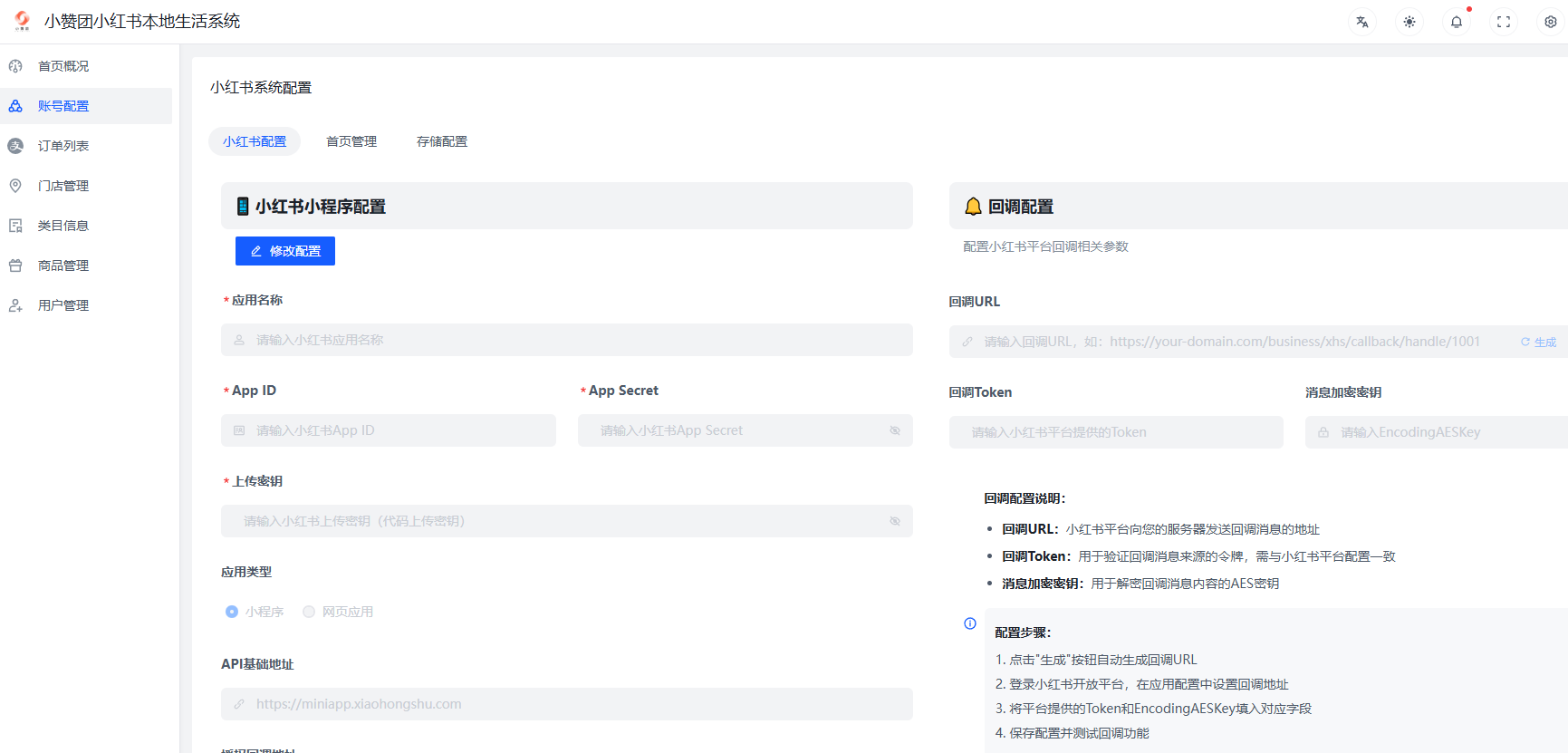 ### 程序介绍: 首发999元 20开,首发1999元 100开,首发2599元 无限开 | 程序名称 | 参考价格 | 程序类别 | 适用平台 | | -------------- | ------------ | -------- | -------- | | 小红书本地生活 | 999元20开 | 独立部署 | 小程序 | | | 1999元100开 | 独立部署 | 小程序 | | | 2599元无限开 | 独立部署 | 小程序 | --- #### 程序简介: 小红书本地生活,丰富的场景入口,年青群体促进新消费,小程序类目全覆盖,支持到店核销/外卖,操作简单自由度高,多商户门店管理,门店手机管理,商品多门店同步等,代理商,外卖配送,酒旅预约,优惠券营销等功能开发中。小红书本地生活团购系统,无需申请服务商,直接注册小程席即可使用,有服务商的可以绑定小程序进行抽点扣费,没有服务商的一样可以正常使用。   --- #### 后台演示: https://xhs.kfsaas.com/webbusiness/ 账号:youma 密码:youma --- #### 前端/案列: ---